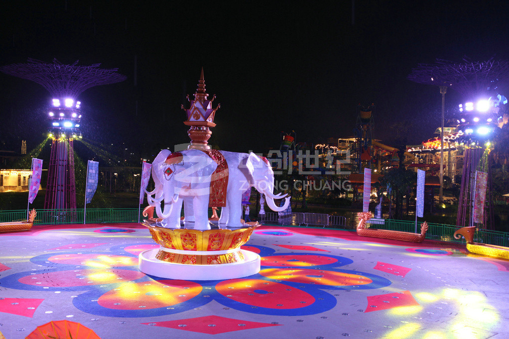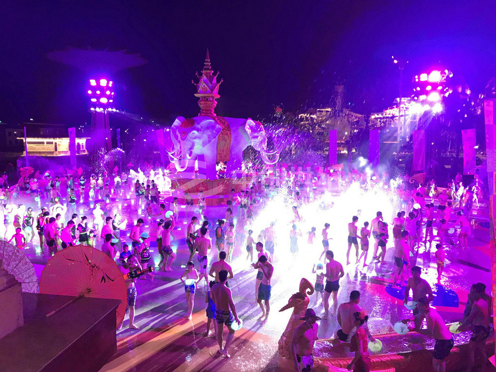潑水廣場是玉林克拉灣斥資1500多萬元建造的廣西大型專業(yè)娛樂項目。廣場潑水面積超1200平方米,運(yùn)用傣族基本元素,并結(jié)合當(dāng)?shù)匚幕瑯O具民族風(fēng)情。