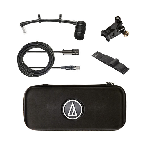 通用卡夾套裝使用堅固的金屬結構,使ATM350U能經受舞臺使用的嚴酷考驗。5寸長的收音頭鵝頸連桿,是銅管樂器和薩克斯演奏的理想配置,巧奪天工的設計,足以滿足幾乎任何的使用情況。卡夾選用橡膠內襯,提供了穩固的安裝、抗沖擊性和對樂器的保護功能。套裝內含 ATM350acH 帶4針cH型接頭無線話筒,可配置鐵三角cH型無線發射器使用。